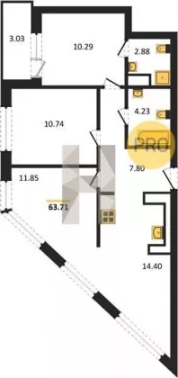 Квартира: 3 к 63,71 кв.м., 2 этаж в комплексе ID Murino 3, 2 очередь, корп.1, сдача: 4кв. , этажей: 12, адрес Муринское г.п., , Застройщик: Euroinvest Development.