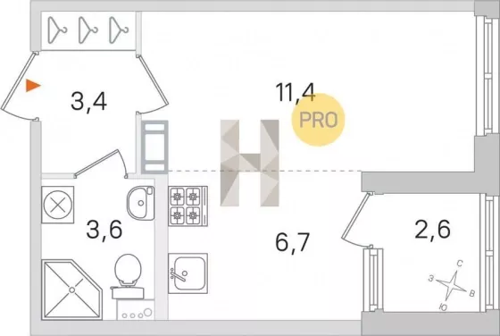 Студия: 25,10 кв.м., 2 этаж в комплексе Дубровский, 1 очередь, корп.4, сдача: 4кв. , этажей: 4, адрес Пушкин г., Гусарская ул., , Застройщик: КВС.