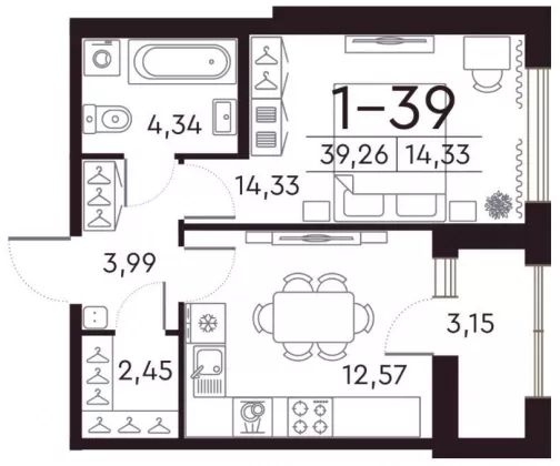 Санкт-Петербург, 1-комнатная, 39,26 кв.м.