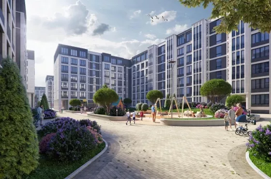 Доступ машин во двор будет ограничен. Здесь оборудуют детские игровые и спортивные площадки. Запланировано ландшафтное озеленение, которое будет препятствовать попаданию шума с дороги.