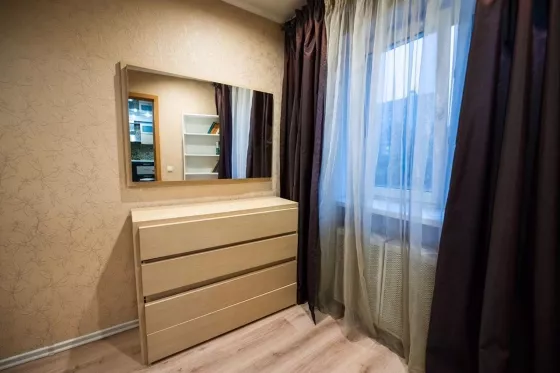 Сдается прекрасная двухкомнатная квартира в центре города Мурманска. Хороший ремонт, уютная и просторная кухня-гостиная, в зоне кухни встроенный гарнитур, вся необходимая мебель и техника: холодильник, микроволновка, плита, посудомоечная машина, вытяжка, на полу кафель. В зоне гостиной располагается двуспальный диван-кровать, встроенный зеркальный шкаф купе для хранения вещей, уютное кресло, на полу качественный ламинат. В спальне большая и очень удобная двуспальная кровать с качественным матрасом, комод для хранения вещей, зеркало, удобное кресло и стеллаж. Санузел совмещен, плитка, качественный ремонт, система вентиляции, шкаф для хранения различных принадлежностей, стиральная машина. Прекрасно развита инфраструктура: рядом ТРЦ Мурманск Молл, остановки общественного транспорта, магазины, аптеки, кафе и рестораны, школы и прогимназии.