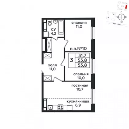 Продается 3-комнатная квартира общей площадью 53.8 кв.м., на 15 этаже. Жилой комплекс ЖК "ЭкоБунино" располагается по адресу г Москва, поселение Сосенское, деревня Столбово, тер СНТ Рассвет. Полное завершение строительства намечено на IV квартал 2024 года.