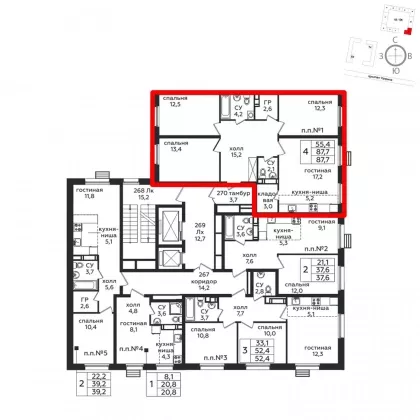| Площадь, кв.м. | 87.7 |