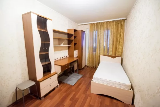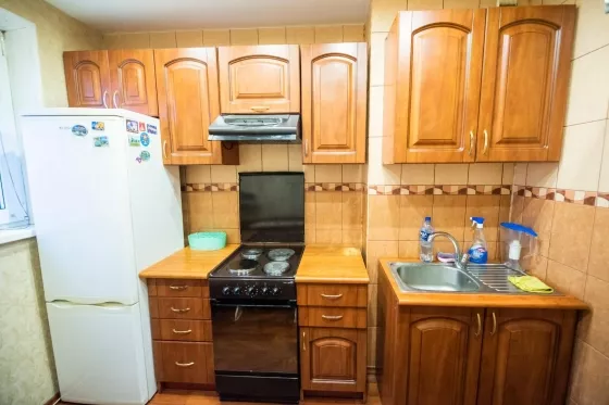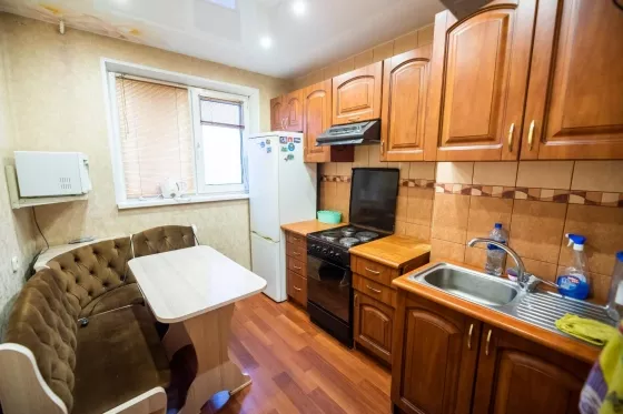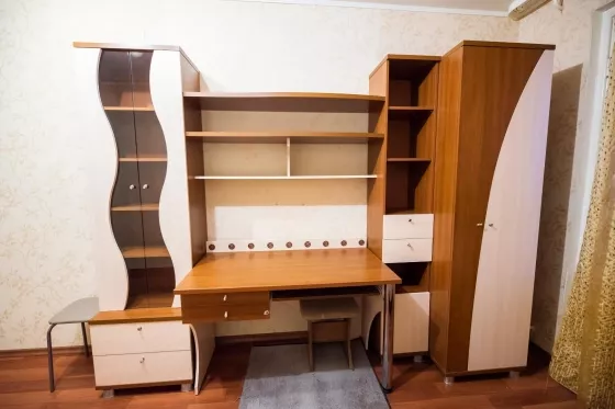 К вашему вниманию предлагается светлая и уютная трехкомнатная квартира в Октябрьском районе для аренды посуточно. Все окна поменяны, санузел раздельный, кафель, также имеется стиральная машина Indesit. На кухне имеется холодильник, встроенный гарнитур с вытяжкой, духовым шкафом, и микроволновкой. В спальной зоне располагается двухспальная кровать и две прикроватные тумбочки, на полу- ковролин. В гостиной стоит диван-кровать, стенка, вместительный шкаф и стол, напольное покрытие-линолиум. В детской односпальная кровать с качественным матрасом, шкафы и рабочий стол. В коридоре вместительный шкаф купе, позволяющий хранить большое количество вещей.