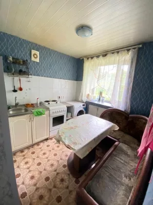 Кухня полностью оборудована всей бытовой техникой: холодильник, газовая плита, СВЧ-печь, стиральная машина и посуда.