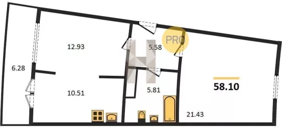 Апартамент: 1 к 58,10 кв.м., 2 этаж в комплексе Лахта Парк, 1 очередь, корп.12, сдача: 3кв. , этажей: 4, адрес Новая ул., д. 51/12, Застройщик: Конкорд Менеджмент и Консалтинг.