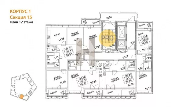 | Жилая площадь | 44.37 |