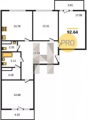 | Площадь, кв.м. | 92.64 |