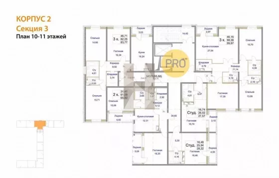 Квартира: 3 к 100,20 кв.м., 11 этаж в комплексе Terra, 2 очередь, корп.2, сдача: 4кв. , этажей: 13, адрес Студенческая ул., д. 14/1/1, Застройщик: РосСтройИнвест.