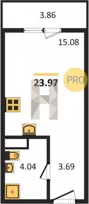 Студия: 23,97 кв.м., 3 этаж в комплексе Avenue Apart на Дыбенко, 1 очередь, корп.1, сдача: 1кв. , этажей: 18, адрес Товарищеский пр., , Застройщик: Р-Фикс.
