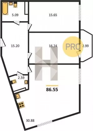 | Площадь, кв.м. | 86.55 |