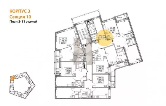 Квартира: 2 к 61,82 кв.м., 11 этаж в комплексе Ариосто, 1 очередь, корп.3, сдача: 4кв. , этажей: 12, адрес Глухарская ул., , Застройщик: Arsenal.
