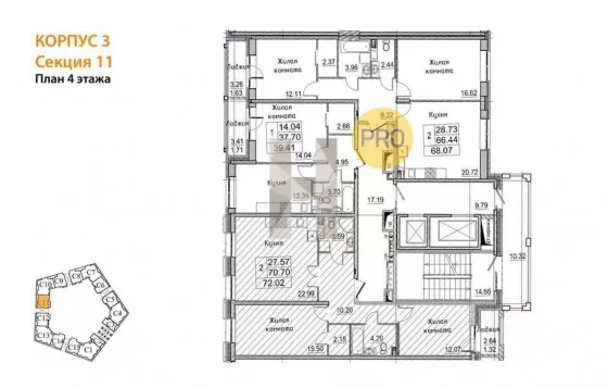 Квартира: 2 к 72,02 кв.м., 4 этаж в комплексе Ариосто, 1 очередь, корп.3, сдача: 4кв. , этажей: 12, адрес Глухарская ул., , Застройщик: Arsenal.