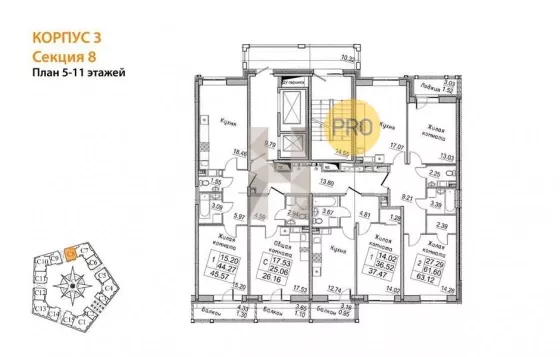 Квартира: 2 к 63,12 кв.м., 8 этаж в комплексе Ариосто, 1 очередь, корп.3, сдача: 4кв. , этажей: 12, адрес Глухарская ул., , Застройщик: Arsenal.