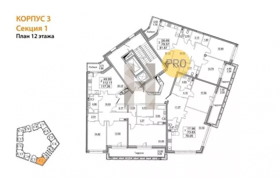 Квартира: 3 к 117,26 кв.м., 12 этаж в комплексе Ариосто, 1 очередь, корп.3, сдача: 4кв. , этажей: 12, адрес Глухарская ул., , Застройщик: Arsenal.