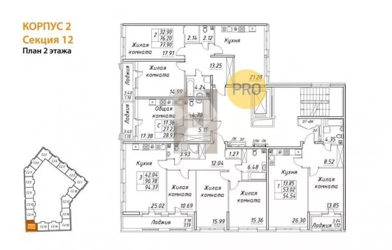 Квартира: 3 к 94,37 кв.м., 2 этаж в комплексе Модум, 1 очередь, корп.2, сдача: 4кв. , этажей: 12, адрес Авиаконструкторов пр., д. 54/стр.1, Застройщик: Arsenal.
