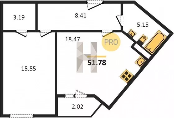 Квартира: 1 к 51,78 кв.м., 2 этаж в комплексе Модум, 1 очередь, корп.2, сдача: 4кв. , этажей: 12, адрес Авиаконструкторов пр., д. 54/стр.1, Застройщик: Arsenal.