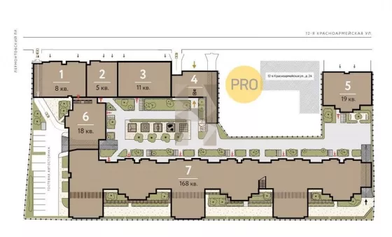 Доступ на территорию комплекса и к жилым парадным осуществляется через входную группу со стороны 12-й Красноармейской улицы - в отдельном корпусе, оформленном в торжественной стилистике, с удобной зоной ожидания и просторным лобби. У каждого жильца будет индивидуальный электронный ключ для доступа на территорию дома или в паркинг. Помимо этого, в комплексе будет внедрена система распознавания лиц Face Recognition. Управлять доступом во двор или в подъезд можно будет прямо со своего смартфона. Вся территория дома охраняется 24 часа в сутки и огорожена по периметру.