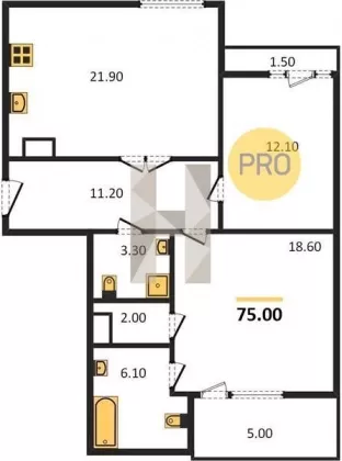 | Площадь кухни, кв.м. | 21.9 |