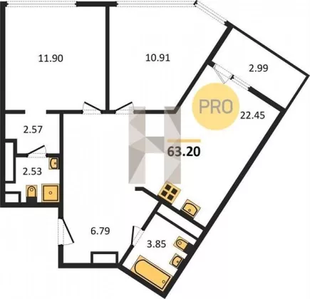 Квартира: 2 к 63,20 кв.м., 9 этаж в комплексе Белый остров, 1 очередь, корп.10-12, сдача: 2кв. , этажей: 12, адрес Белоостровская ул., д. 7/1, Застройщик: Базис СПб.