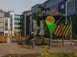 Десять 4-этажных жилых домов с мансардами просто призваны раствориться в природном окружении, воссоздавая атмосферу скандинавского пригорода. Создать комфортную, безопасную среду обитания поможет планировка квартала: корпуса зданий объединяются между собой в форме буквы П, создавая особое, почти закрытое пространство дворов. Такие дворы удобны для размещения детских площадок, зон отдыха – к тому же они будут закрыты от сквозного проезда автомобилей.