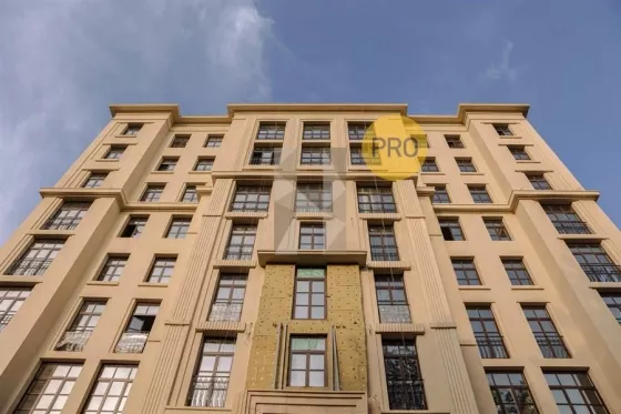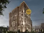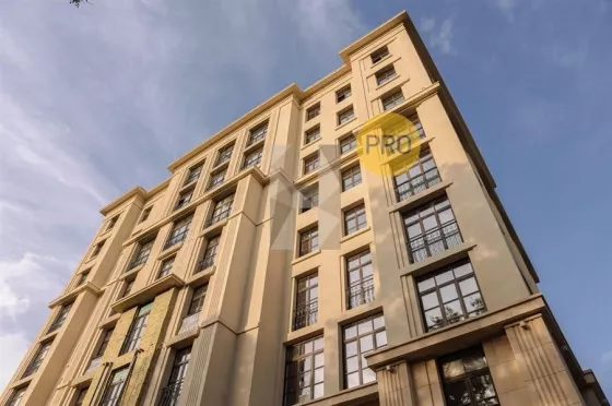Монументальные фасады отделаны благородным камнем светлых оттенков, украшены пилястрами с тонким орнаментом и карнизами. Ноту парадности в экстерьер добавляют панорамные французские окна, в изящными декоративныит решетками балконов, высокие арки и двустворчатые двери подъездов с декоративными элементами.