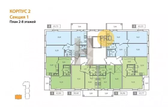 Квартира: 2 к 62,50 кв.м., 7 этаж в комплексе IQ Гатчина, 4 очередь, корп.2, сдача: 4кв. , этажей: 8, адрес Гатчина г., Чехова ул., д. 41/3, Застройщик: Ленстройтрест.