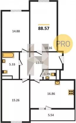 | Площадь, кв.м. | 88.57 |