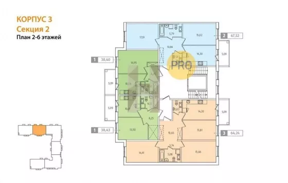 Квартира: 3 к 67,73 кв.м., 2 этаж в комплексе IQ Гатчина, 4 очередь, корп.3, сдача: 2кв. , этажей: 9, адрес Гатчина г., Чехова ул., д. 41, Застройщик: Ленстройтрест.