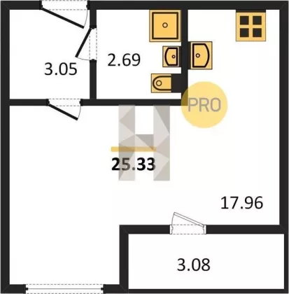| Площадь, кв.м. | 25.33 |