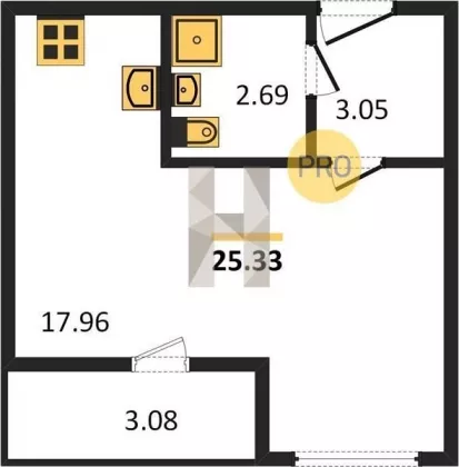 | Площадь, кв.м. | 25.33 |