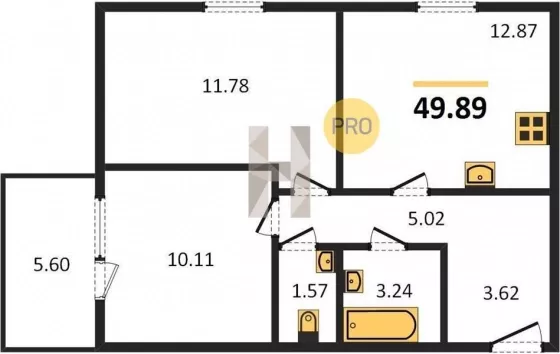 | Площадь кухни, кв.м. | 12.87 |
