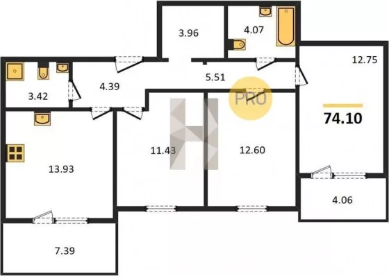 | Площадь, кв.м. | 74.1 |