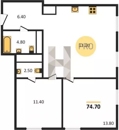 Квартира: 2 к 74,70 кв.м., 5 этаж в комплексе Аура, 1 очередь, корп.1, сдача: 2кв. , этажей: 6, адрес Зеленогорская ул., д. 3 лит. А, Застройщик: Hansa.