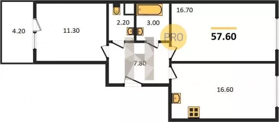 | Площадь, кв.м. | 57.6 |