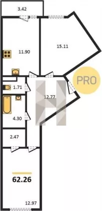 Квартира: 2 к 62,26 кв.м., 9 этаж в комплексе Модум, 1 очередь, корп.3, сдача: 2кв. , этажей: 12, адрес Глухарская ул., д. 54/стр.1, Застройщик: Arsenal.