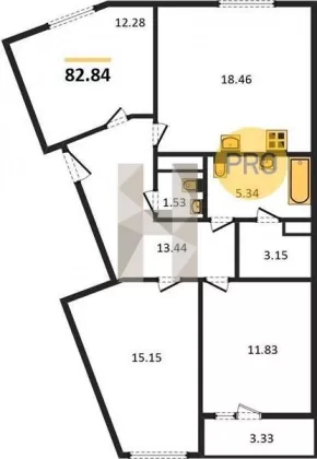 | Площадь кухни, кв.м. | 18.46 |