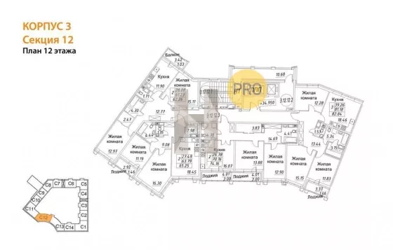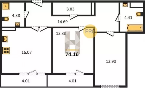 Квартира: 2 к 74,16 кв.м., 12 этаж в комплексе Модум, 1 очередь, корп.3, сдача: 2кв. , этажей: 12, адрес Глухарская ул., д. 54/стр.1, Застройщик: Arsenal.
