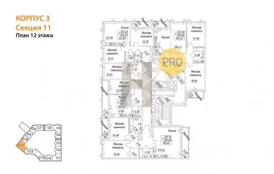 Квартира: 2 к 93,42 кв.м., 12 этаж в комплексе Модум, 1 очередь, корп.3, сдача: 2кв. , этажей: 12, адрес Глухарская ул., д. 54/стр.1, Застройщик: Arsenal.
