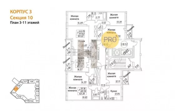 Квартира: 1 к 45,50 кв.м., 6 этаж в комплексе Модум, 1 очередь, корп.3, сдача: 2кв. , этажей: 12, адрес Глухарская ул., д. 54/стр.1, Застройщик: Arsenal.