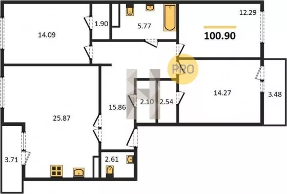 Квартира: 3 к 100,90 кв.м., 12 этаж в комплексе Модум, 1 очередь, корп.3, сдача: 2кв. , этажей: 12, адрес Глухарская ул., д. 54/стр.1, Застройщик: Arsenal.