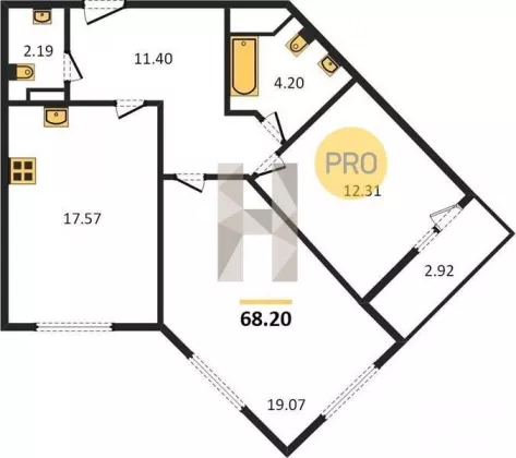 Квартира: 2 к 68,20 кв.м., 6 этаж в комплексе Модум, 1 очередь, корп.3, сдача: 2кв. , этажей: 12, адрес Глухарская ул., д. 54/стр.1, Застройщик: Arsenal.
