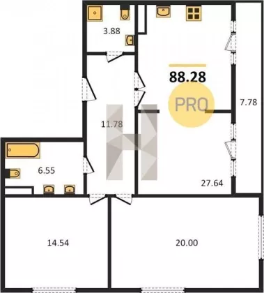 Квартира: 2 к 88,28 кв.м., 10 этаж в комплексе Модум, 1 очередь, корп.3, сдача: 2кв. , этажей: 12, адрес Глухарская ул., д. 54/стр.1, Застройщик: Arsenal.