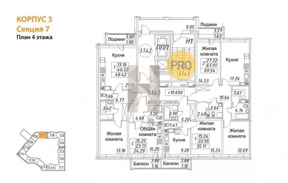 Квартира: 1 к 48,42 кв.м., 4 этаж в комплексе Модум, 1 очередь, корп.3, сдача: 2кв. , этажей: 12, адрес Глухарская ул., д. 54/стр.1, Застройщик: Arsenal.
