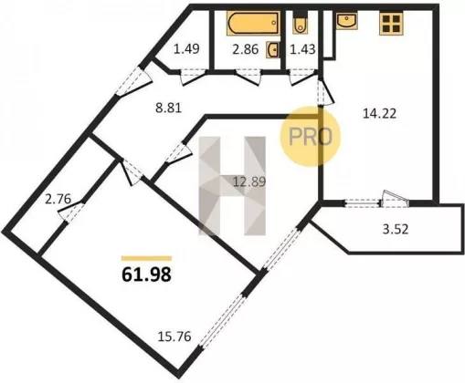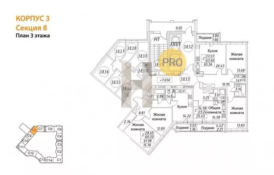 Квартира: 2 к 61,98 кв.м., 3 этаж в комплексе Модум, 1 очередь, корп.3, сдача: 2кв. , этажей: 12, адрес Глухарская ул., д. 54/стр.1, Застройщик: Arsenal.