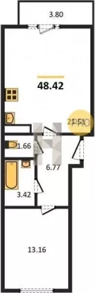 Квартира: 1 к 48,42 кв.м., 8 этаж в комплексе Модум, 1 очередь, корп.3, сдача: 2кв. , этажей: 12, адрес Глухарская ул., д. 54/стр.1, Застройщик: Arsenal.