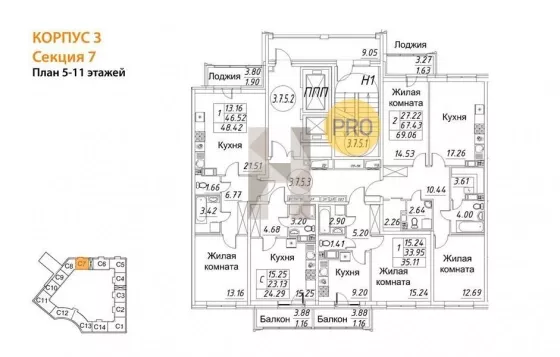 Квартира: 1 к 48,42 кв.м., 11 этаж в комплексе Модум, 1 очередь, корп.3, сдача: 2кв. , этажей: 12, адрес Глухарская ул., д. 54/стр.1, Застройщик: Arsenal.