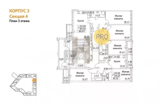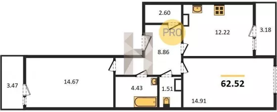 Квартира: 2 к 62,52 кв.м., 3 этаж в комплексе Модум, 1 очередь, корп.3, сдача: 2кв. , этажей: 12, адрес Глухарская ул., д. 54/стр.1, Застройщик: Arsenal.