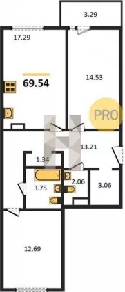 Квартира: 2 к 69,54 кв.м., 9 этаж в комплексе Модум, 1 очередь, корп.3, сдача: 2кв. , этажей: 12, адрес Глухарская ул., д. 54/стр.1, Застройщик: Arsenal.