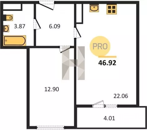 Квартира: 1 к 46,92 кв.м., 9 этаж в комплексе Модум, 1 очередь, корп.3, сдача: 2кв. , этажей: 12, адрес Глухарская ул., д. 54/стр.1, Застройщик: Arsenal.
